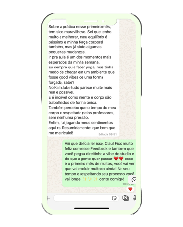 O Kali Club nasceu da minha própria jornada de transformação. Percebi que o yoga não precisa ser algo difícil, que exige horas do dia ou um corpo flexível. O yoga é um refúgio, uma ferramenta de força e renovação, e ele pode ser parte da sua vida, do seu jeito.